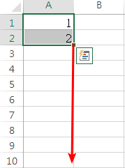 再來將兩儲存格框選後按住右下角向下拖曳即可,如Fig. 1. 2. 所示