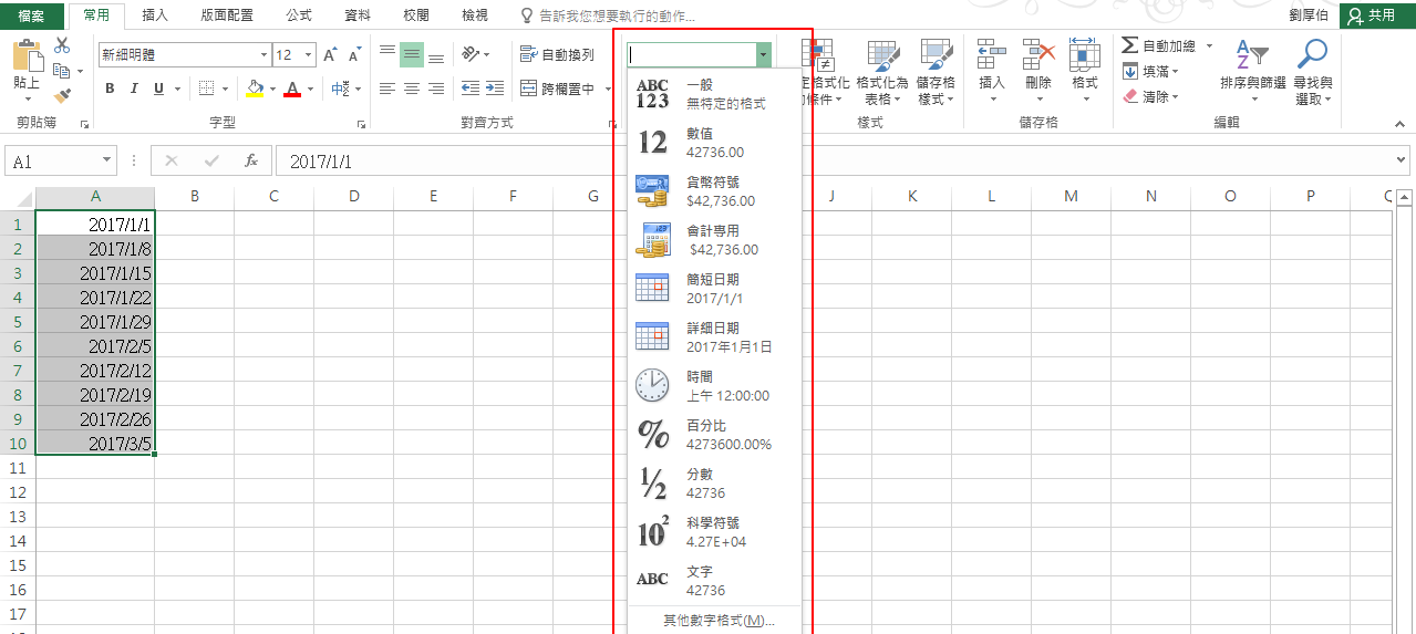 在Excel中內建了ˊ許多儲存格的格式,不同的格式會使得顯示的內容不同,