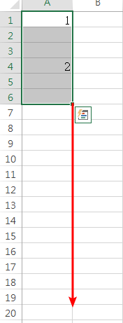 在Excel中我們只需要先在一連續相鄰的儲存格中填入1 與 2 ,