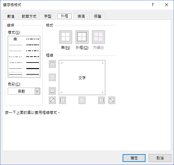 可以呈現出所有框線設定,