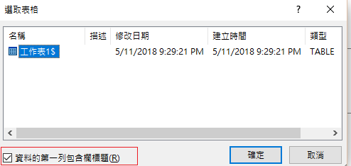 之後選擇 "使用現有清單" 匯入我們剛剛建立的Excel清單,