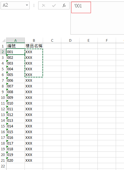 若是需要開頭有數字 "0" 的序號可以在數字前加上一個上引號,